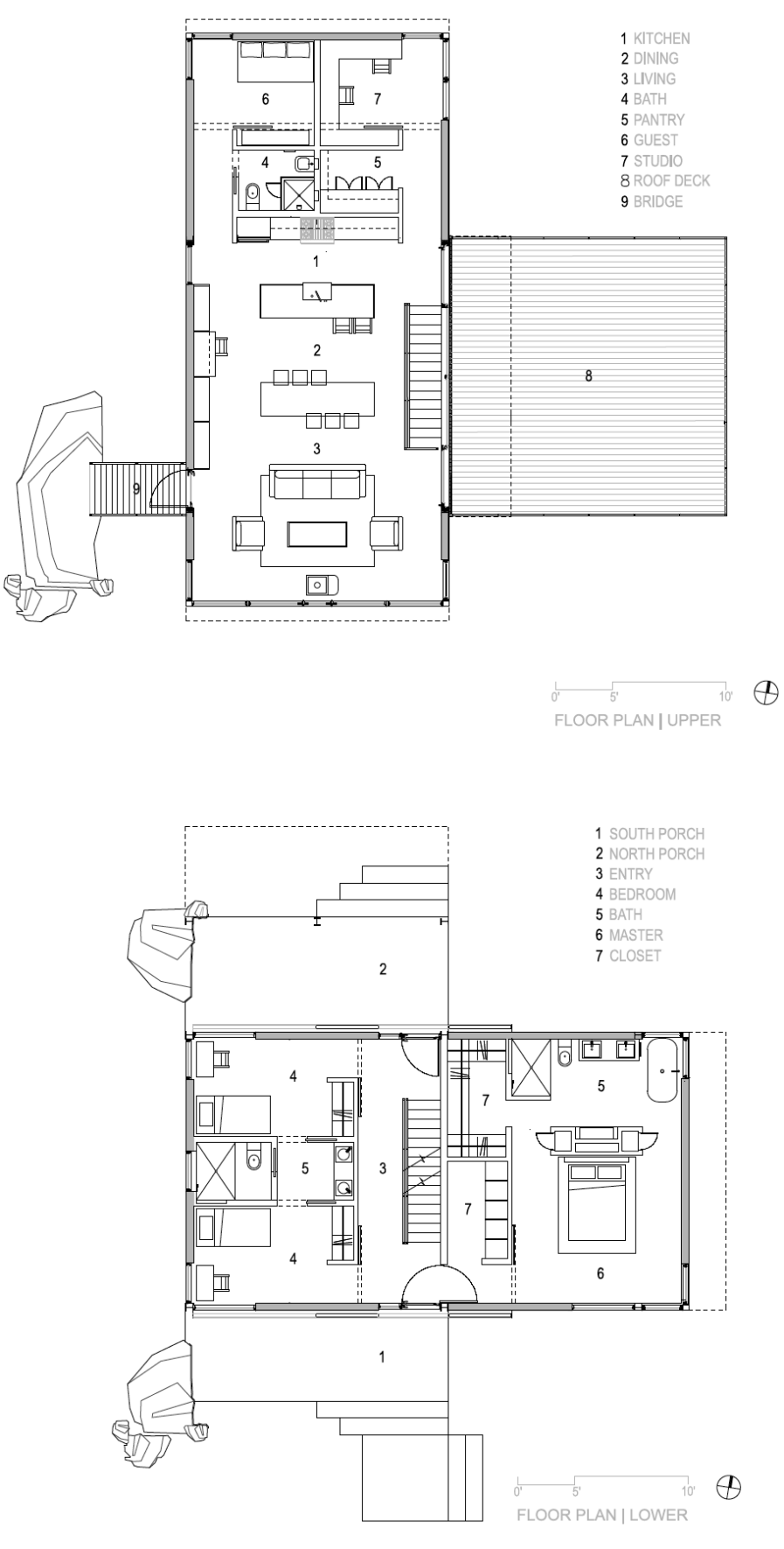 A 3.6 kW photovoltaic array, efficient electric appliances, and all-LED lighting make the home net-zero electric. Closed- and open-cell insulation, triple-pane low-e windows, and rolling shutters stabilize indoor temperatures. A high-efficiency boiler, hydronic radiant floors, and a wood stove provide heat, while an open plan with opposing windows brings in daylight and natural ventilation.